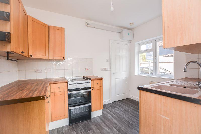 Accessed via the entrance lobby, you are welcomed into the kitchen. Comprised of eye level and low level units, this generously sized space offers ample storage whilst housing amenities such as an inset sink, an electric oven and plumbing space for a washing machine. Complete with wood effect flooring and painted walls, this space benefits from splashback wall tiling as well as a double glazed window towards the front elevation of the property. There is a open doorway leading to the lounge and a further door leading to the bedroom.
