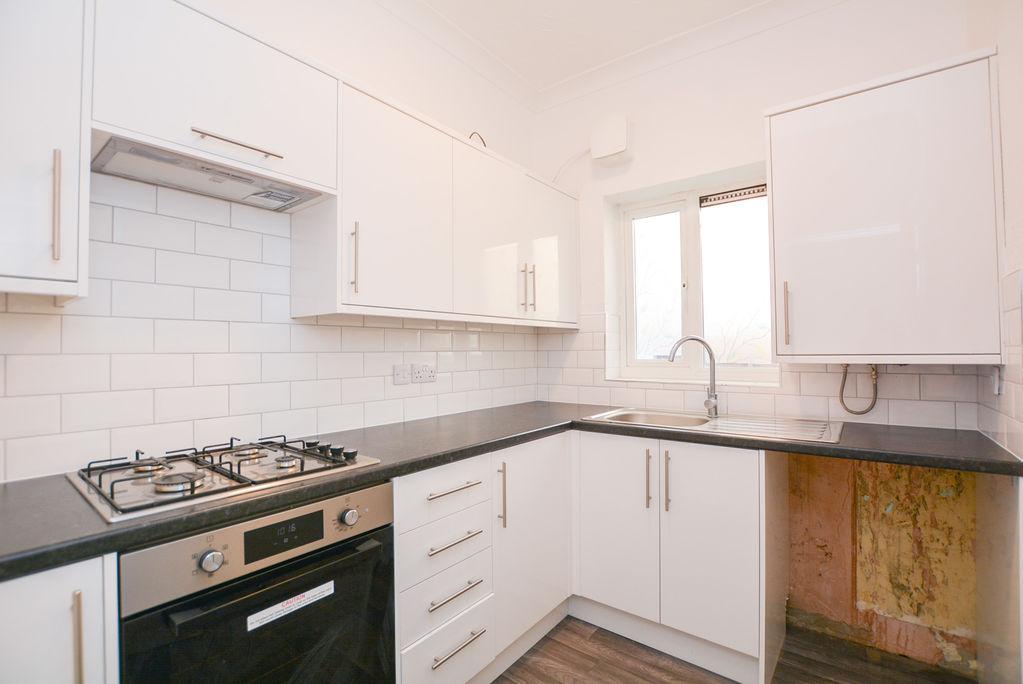 Accessed from the entrance hallway, there is a modern kitchen area. Comprised of both low level and eye level storage units, this space provides an inset sink with dryer unit, an integrated oven, hob and an extractor. Benefiting from a double glazed, obscured window towards the side elevation, this space is complete with splashback wall tiling and wood effect flooring.