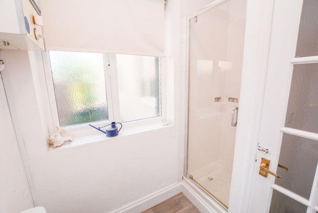 Accessed from the third bedroom, there is an en-suite shower room. With wood effect flooring and painted walls, this space is comprised of a shower cubicle, a low level W/C and pedestal hand wash basin. Benefiting from a double glazed, obscured window towards the rear elevation, this space includes a wall mounted, mirrored storage unit.
