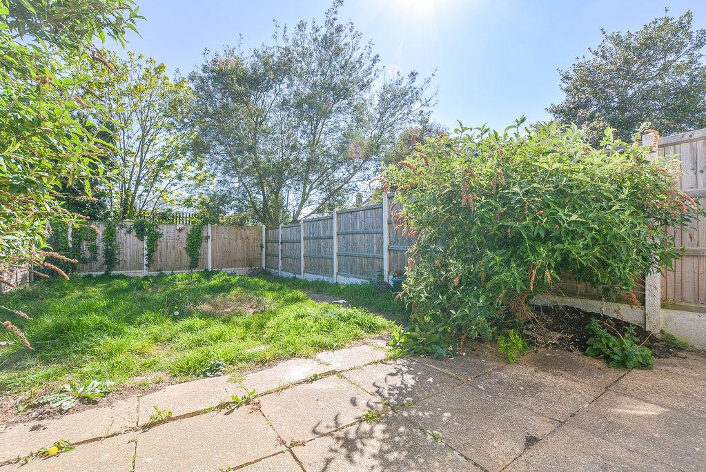 Accessed from the main bedroom, there is a rear garden. With a section of patio for outdoor seating, there is a further section that is laid to lawn.