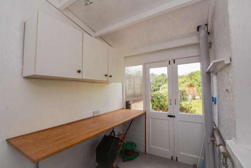 Accessed via the kitchen, there is a utility space. Finished with painted walls, this area offers additional eye level storage units as well as plumbing access for a washing machine. With glass paneled, double doors towards the rear elevation of the property, this space provides access to the rear garden.