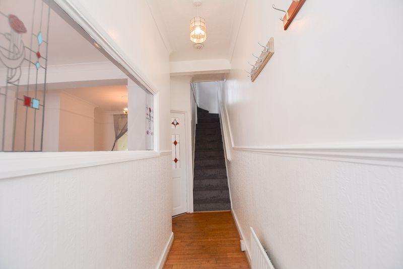 Accessed via a uPVC front door, you are welcomed into the entrance hallway. Finished with wooden flooring and painted walls, this space boasts decorative features such as a dado rail, a coved ceiling and a window that looks into the lounge space. Added benefits of this area include wall mounted clothes pegs and a fitted radiator. There is a glass paneled door that leads into the lounge, alongside a rising staircase that guides you to the first floor.