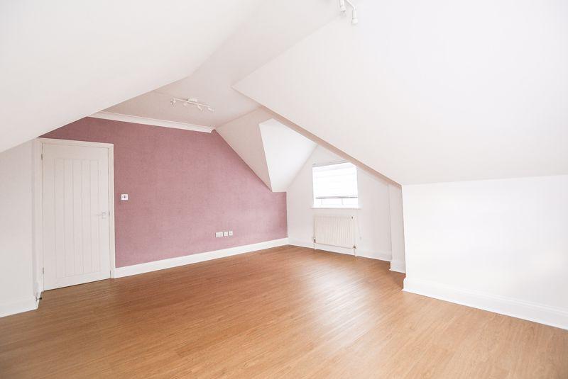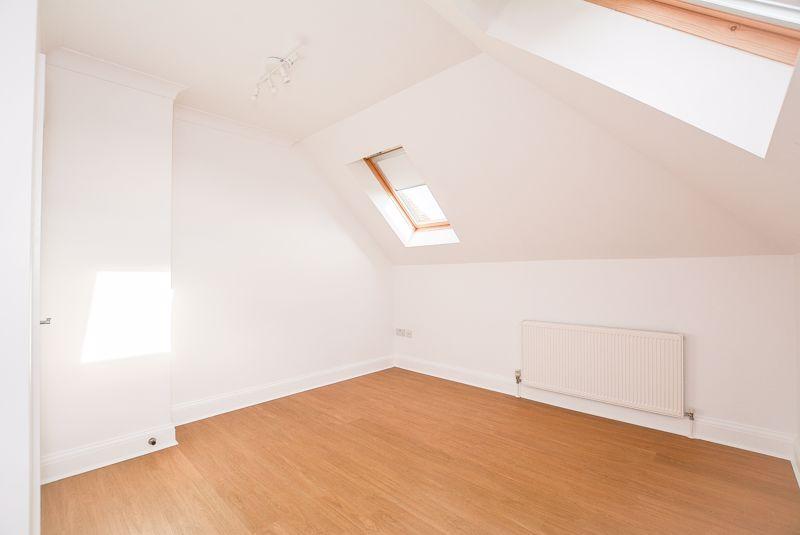 Accessed from the private entrance hallway, there is a double bedroom. With wood effect flooring and painted walls, this space benefits from a fitted radiator as well as two, double glazed, velux windows.