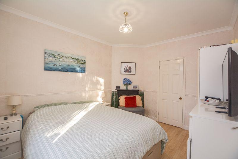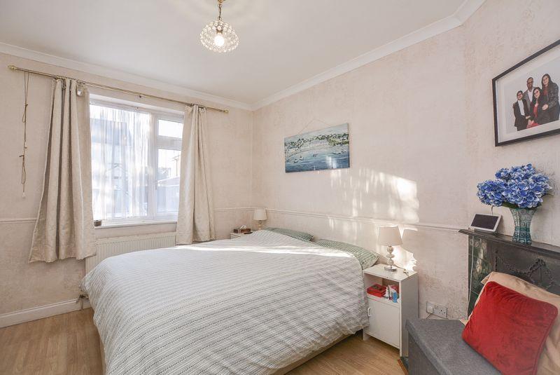 Accessed from the foyer, there is the secondary bedroom. With wood effect flooring and painted walls, this space benefits from decorative features such as a dado rail and fireplace, as well as a double glazed window towards the front elevation, a fitted radiator and a walk in wardrobe.