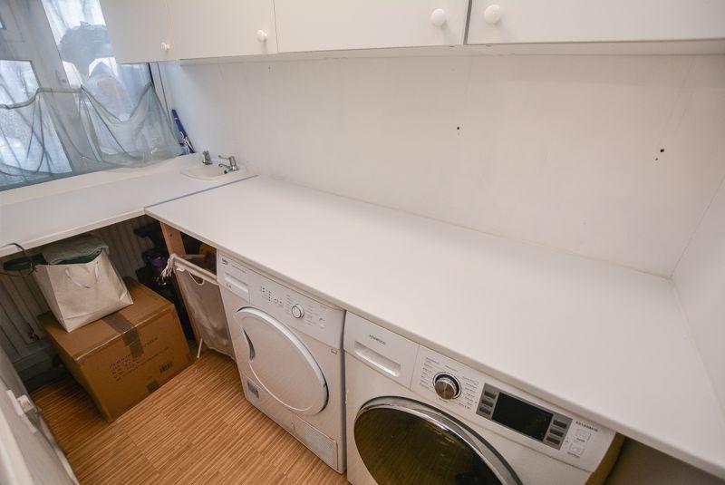 Accessed from the lounge, there is a utility room. Comprised of eye level storage units and low level counters, this space provides plumbing for utilities, whilst housing an inset sink. With wood effect flooring and painted walls, this space is complete with a double glazed window towards the rear elevation.