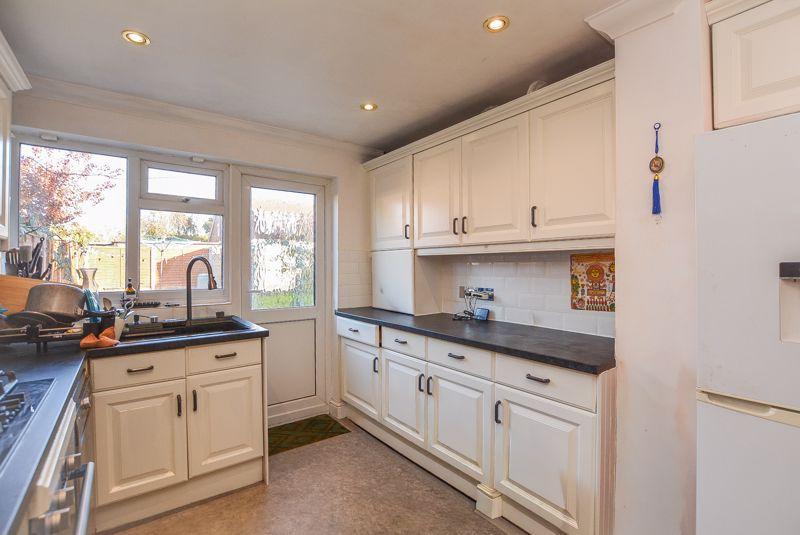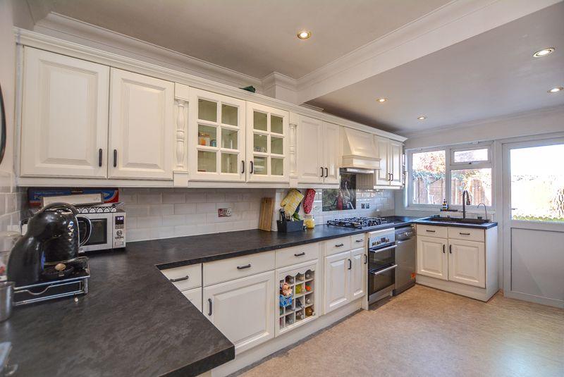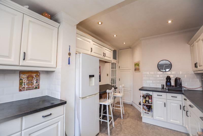 Accessed from the lounge, there is a bright kitchen area. Comprised of eye level and low level storage units, this space houses amenities such as an oven, a hob, an extractor, a sink with drier unit and plumbing for a dishwasher. Complete with a double glazed window towards the rear elevation, as well as a uPVC door, this space benefits from splashback wall tiling, recessed spotlighting, a built in storage cupboard and a breakfast bar.