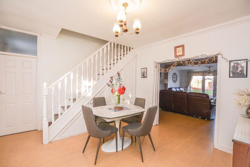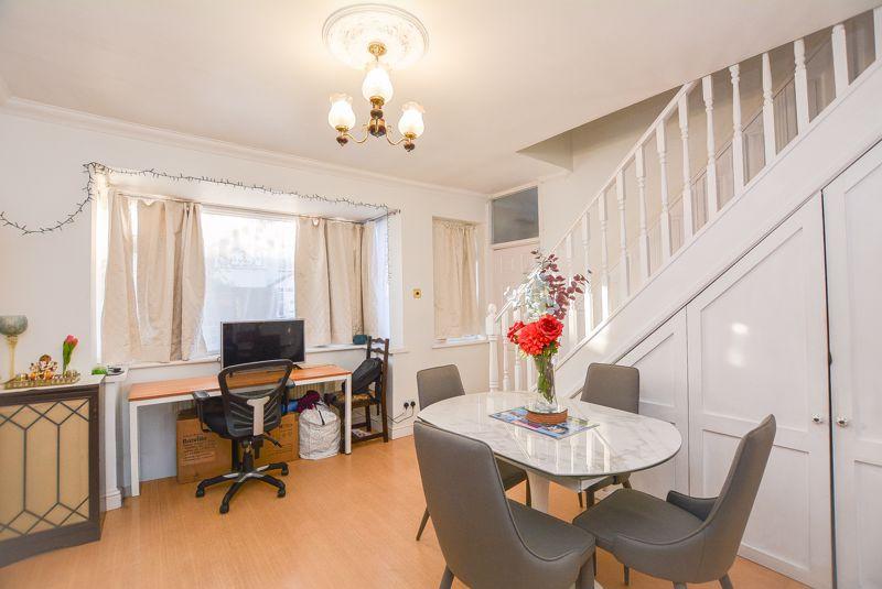 Accessed from the entrance hallway, there is a foyer space. Currently used as a dining area, this space is finished with painted walls and wood effect flooring. Boasting a double glazed bay window towards the front elevation, as well as under the stairs storage units, this space benefits from a fitted radiator. From here, there is a further door leading to the second bedroom, an open doorway that seamlessly transitions into the lounge and a rising staircase that leads to the first floor.