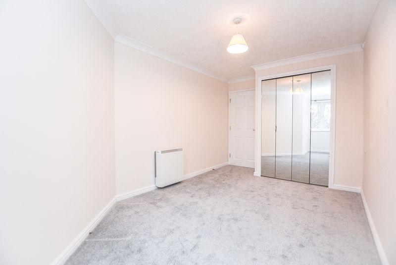 Accessed from the private entrance hallway, there is a sizable bedroom. With carpet flooring and painted walls, this space benefits from a mirrored, built in wardrobe that provides ample storage, as well as a wall mounted electric heater and a double glazed window towards the rear elevation, allowing plentiful natural light.
