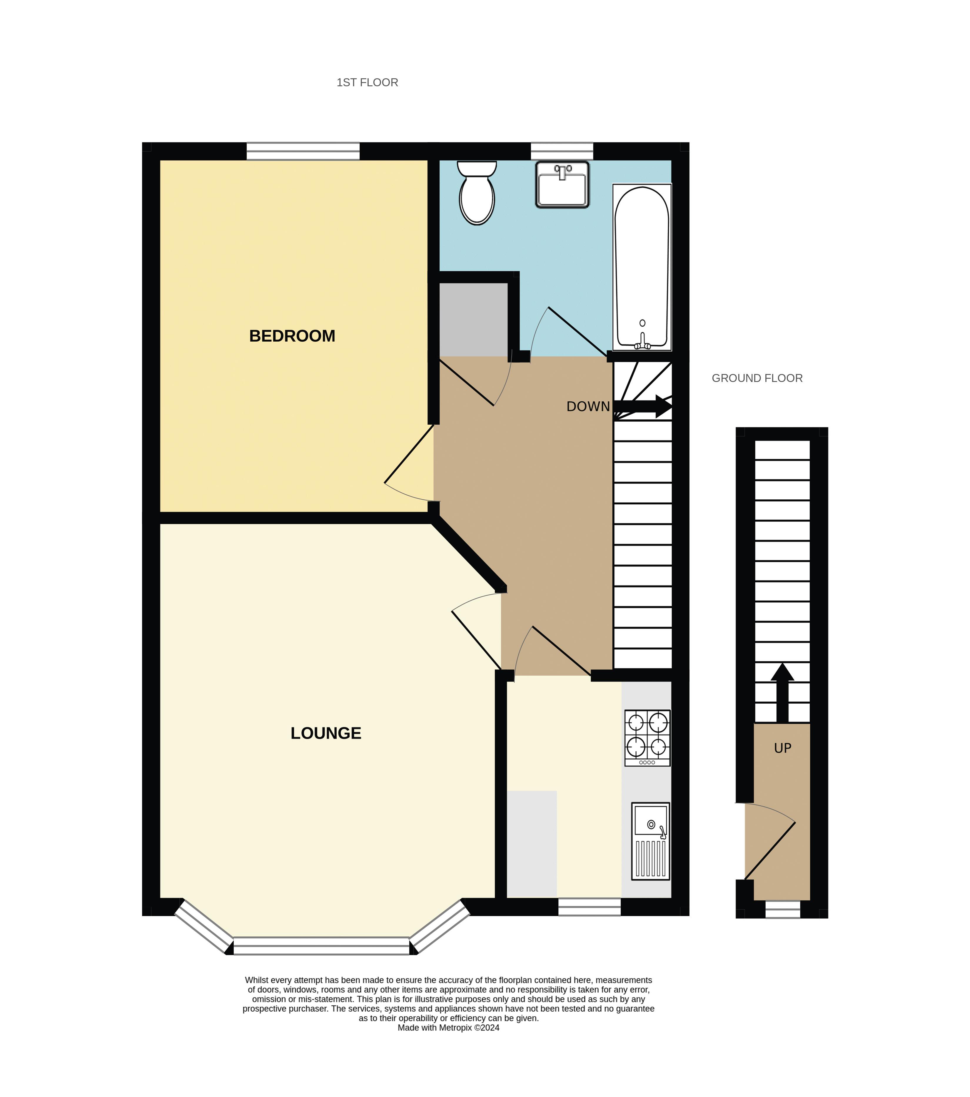 At the top of the rising staircase, you are guided into the first floor landing. Finished with painted walls and wood effect flooring, this space boasts the added benefit of a built in storage cupboard. There are wooden doors leading to the lounge, kitchen, bedroom and bathroom.