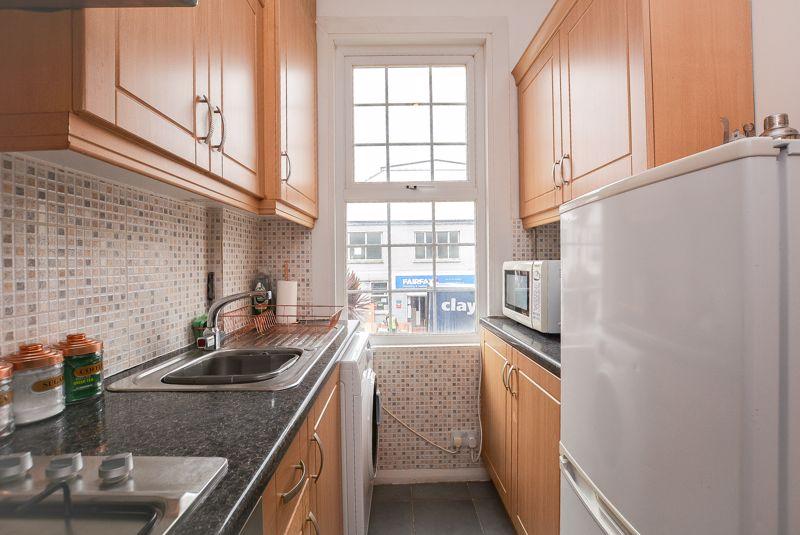 Towards the front elevation of the property, there is the kitchen. Comprised of both eye level and low level units, this space boasts an integrated oven paired with a hob as well as an extractor whilst also providing plumbing space for a washing machine. Finished with tiled flooring and mosaic style splashback wall tiling, this space benefits from a window towards the front elevation, allowing plentiful natural light.
