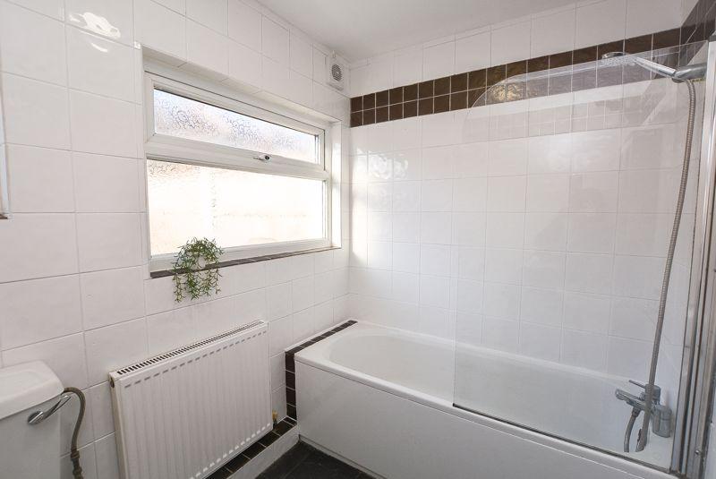 From the kitchen, you are welcomed into the three piece, modern bathroom suite. With tiled flooring and complimentary tiled walls, this space is comprised of a low level W/C, a pedestal hand wash basin, a wall mounted shower, a paneled bath and a shower screen. Complete with a fitted radiator and two double glazed, obscured windows to the rear elevation, this space benefits from a wall mounted, mirrored storage unit.