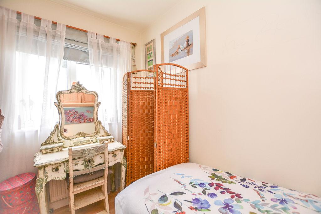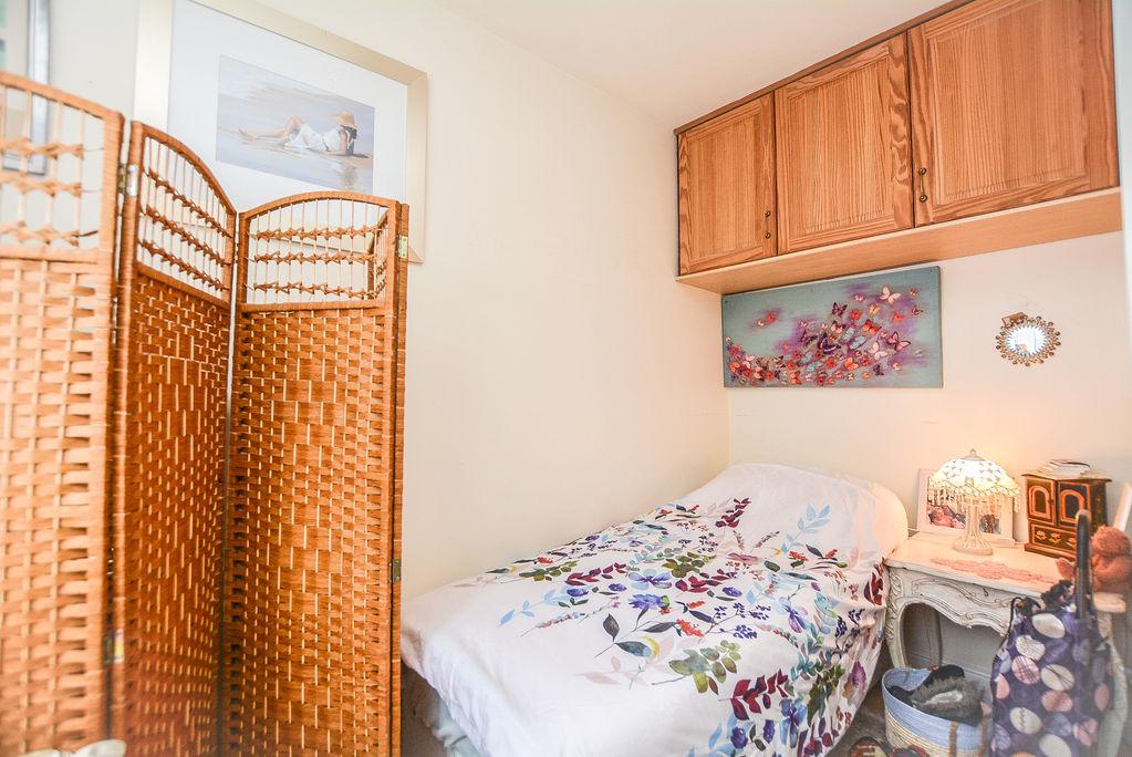 Accessed from the entrance hallway, there is a secondary bedroom. Finished with wood effect flooring and painted walls, this space benefits from a fitted radiator, a double glazed window towards the side elevation and fitted, wall mounted storage units.