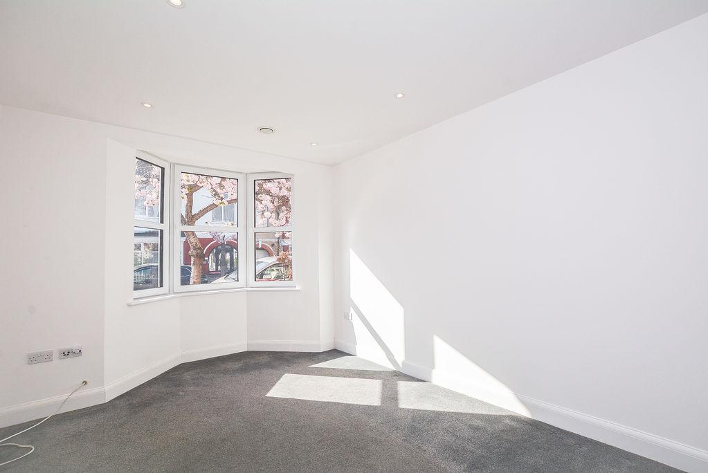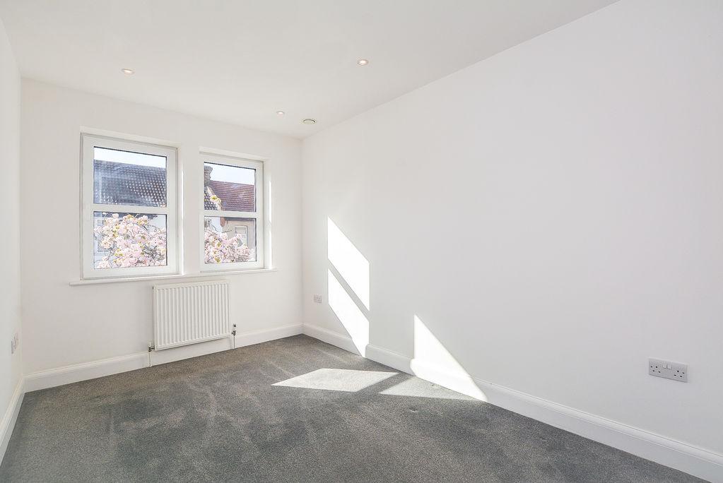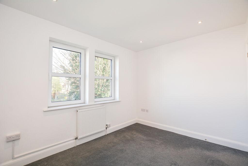 Towards the rear of the property is the second bedroom. Complete with carpeted flooring and painted walls. This space features windows towards the rear of the property, overlooking the garden. Added benefits of this space includes recessed spot lighting.