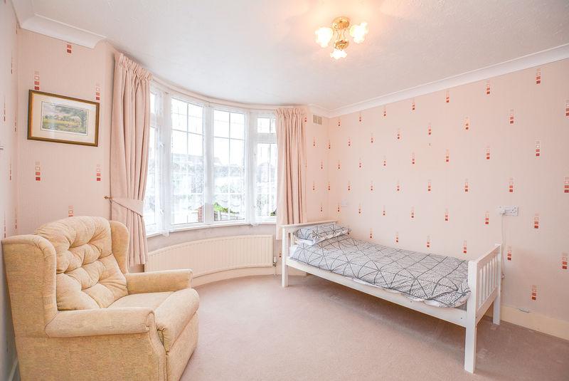 Accessed from the entrance hallway, there is a secondary double bedroom. With carpet flooring, wallpapered walls and textured ceiling complete with coving, this space benefits from a fitted radiator as well as a double glazed window towards the front elevation, allowing plentiful natural light.