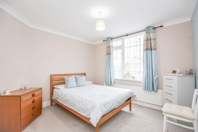 Accessed from the entrance hallway, there is a wooden door that guides you into the master bedroom. With carpet flooring, wallpapered walls and textured ceiling complete with coving, this space benefits from a fitted radiator, as well as a large, double glazed window towards the front elevation, allowing plentiful natural light.