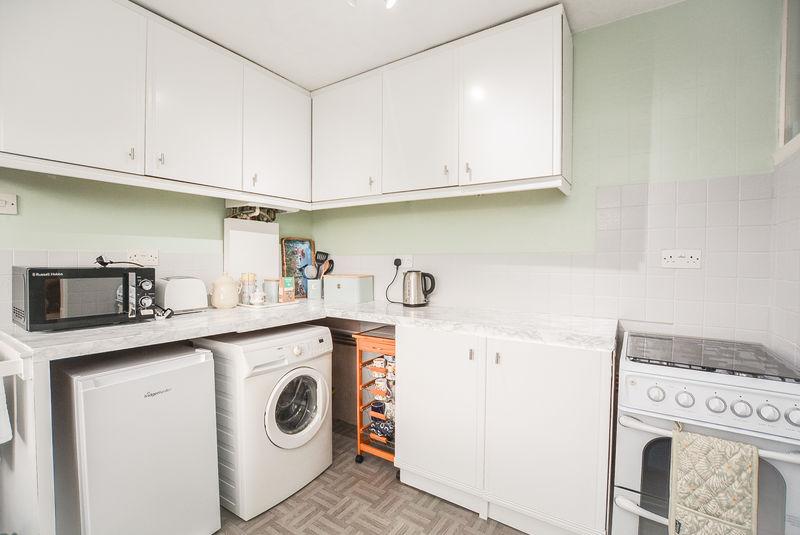 Accessed from the open plan, lounge diner, you are welcomed into the kitchen space. Comprised of both eye level and low level storage units, this space houses amenities such as a stainless steel sink with dryer unit, plumbing for a washing machine and access for an oven. With splashback wall tiling, this space boasts a bright colour scheme that is complimented by the plentiful natural light coming from the double glazed window at the rear elevation. There is a further uPVC door leading to the outside space.