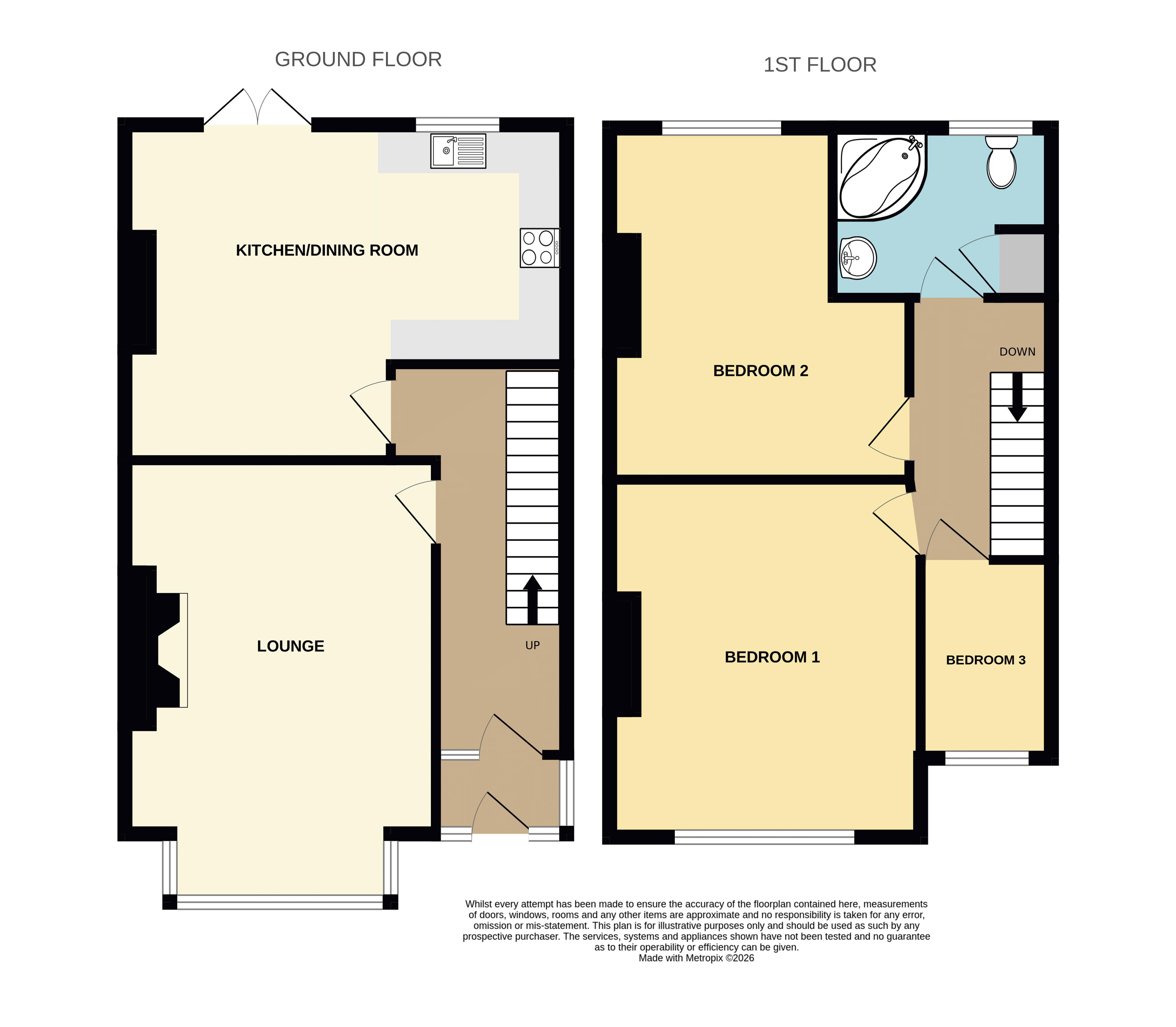 Accessed from the kitchen, you are welcomed into the rear garden. With a section of patio to allow for outdoor seating, this space is mainly laid to lawn to provide plentiful space for summer fun.