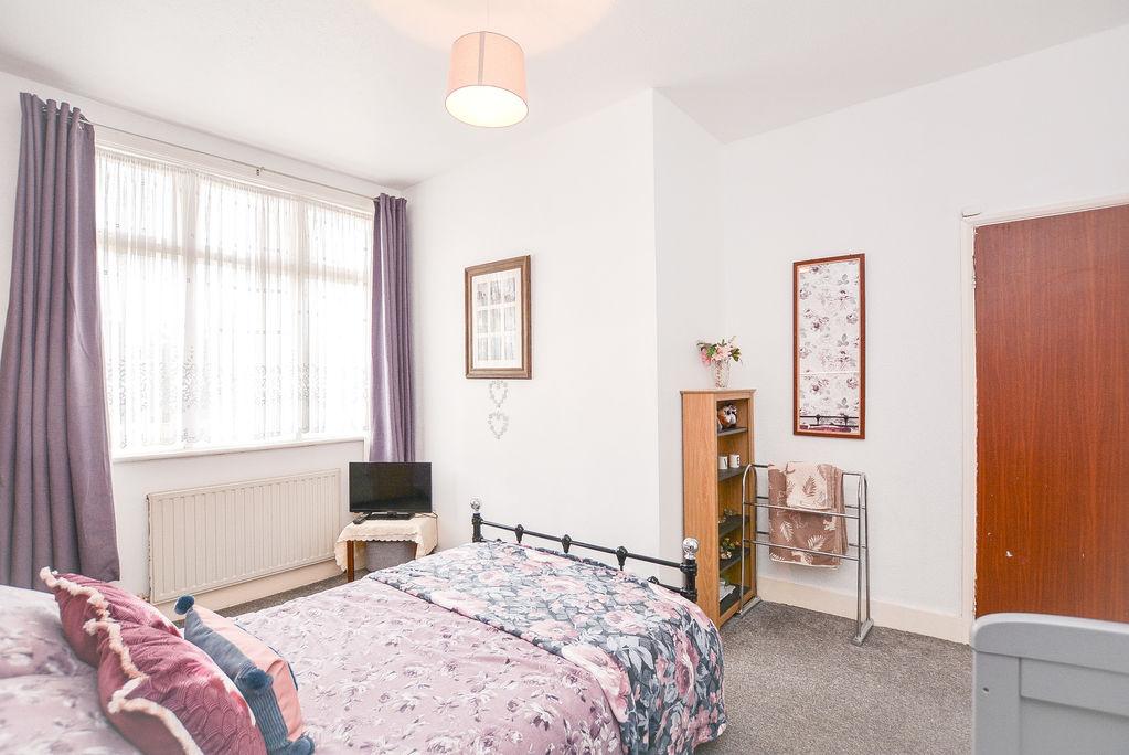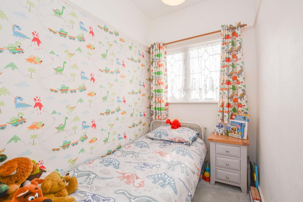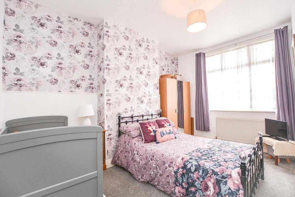Accessed from the first floor landing, there is a third bedroom. With carpet flooring and painted walls, this space benefits from a decorative feature wall and picture rail, alongside practical benefits such as a fitted radiator and a double glazed window towards the front elevation.