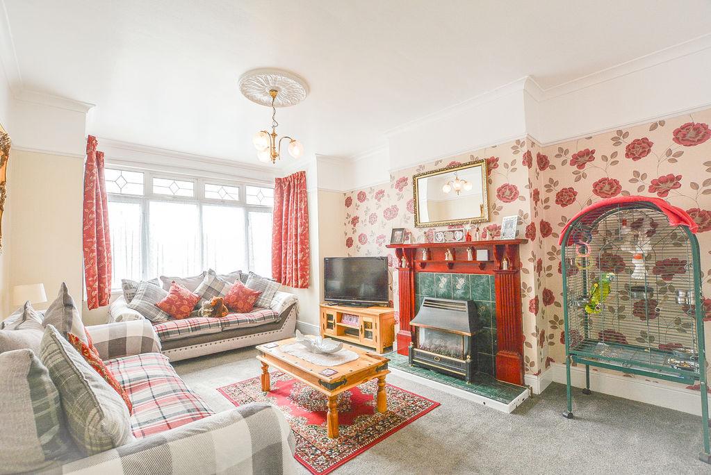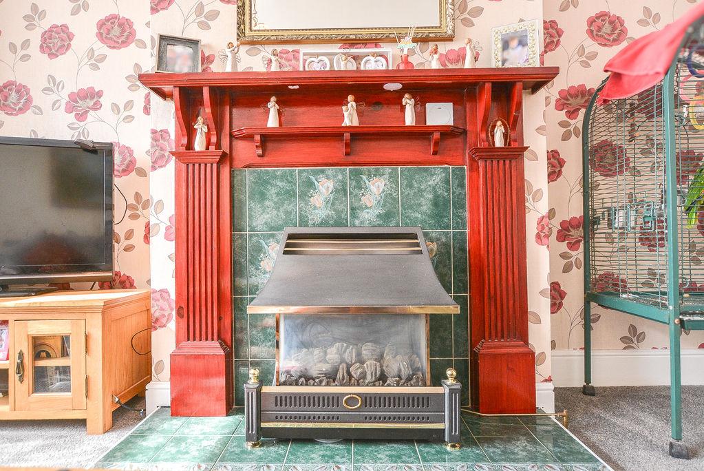 Accessed from the entrance hallway, there is a bright lounge space. With carpet flooring and wallpapered walls, this space benefits from a fitted radiator and double glazed bay window towards the front elevation, whilst boasting decorative features such as a picture rail, a ceiling rose and an oppulant fireplace.