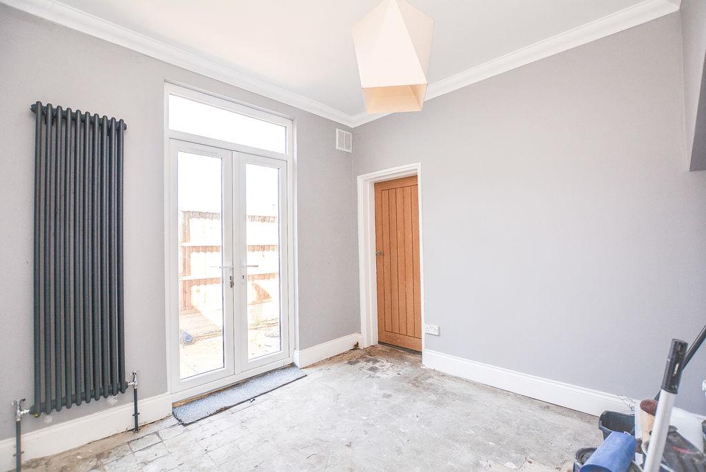 Accessed from the entrance hallway, there is a dining room. With painted walls and a fitted radiator, this space is complete with double glazed, uPVC french doors towards the side elevation, to allow access to the rear garden. There is a further doorway leading to the kitchen and the second bedroom.