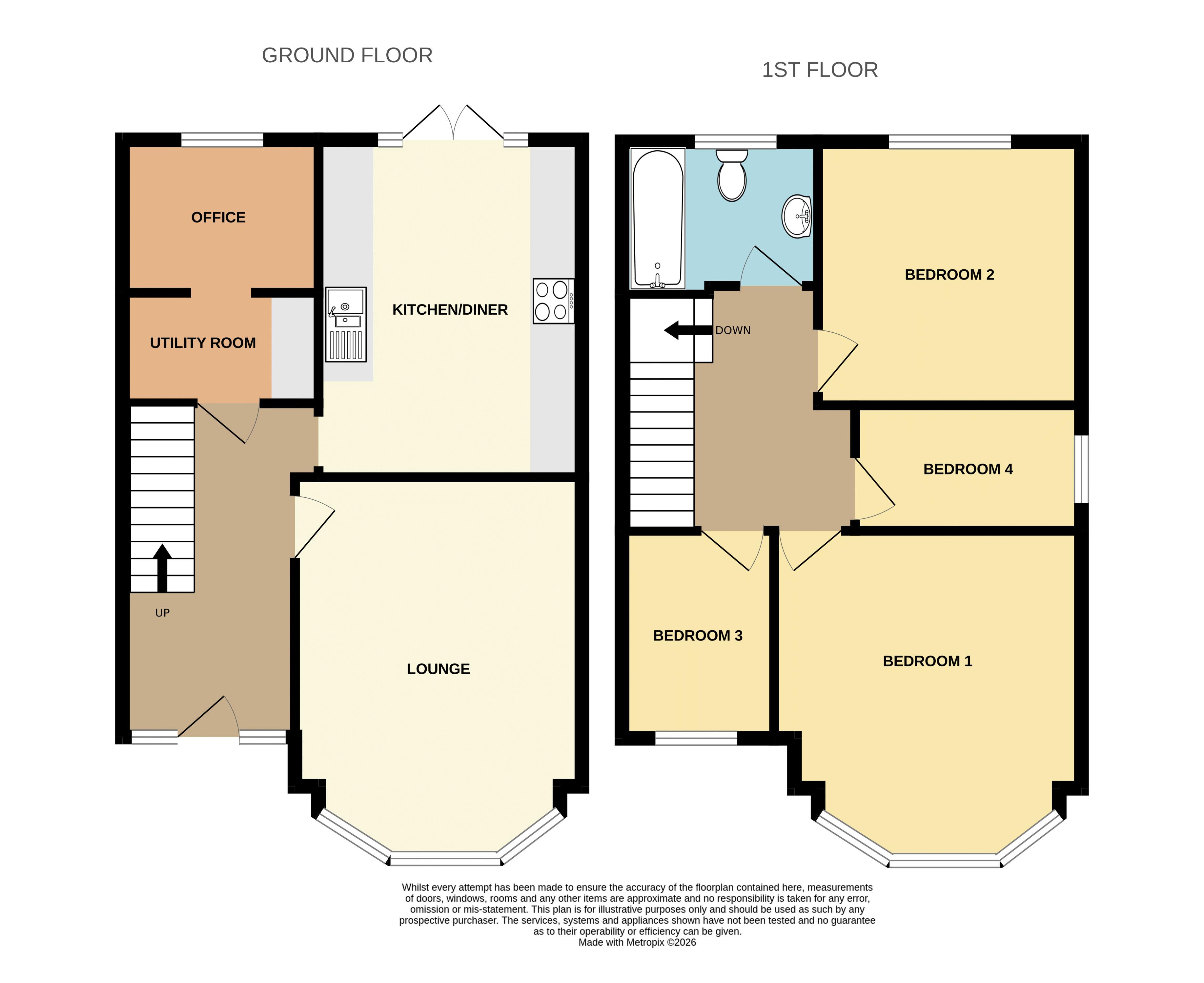 From the utility area, there is an open doorway leading into the office space. Currently fashioned as a playroom, this space is versatile in nature, allowing it to be used in any way that you need. Complete with carpet flooring and painted walls, this space benefits from a double glazed, obscured window towards the rear elevation.