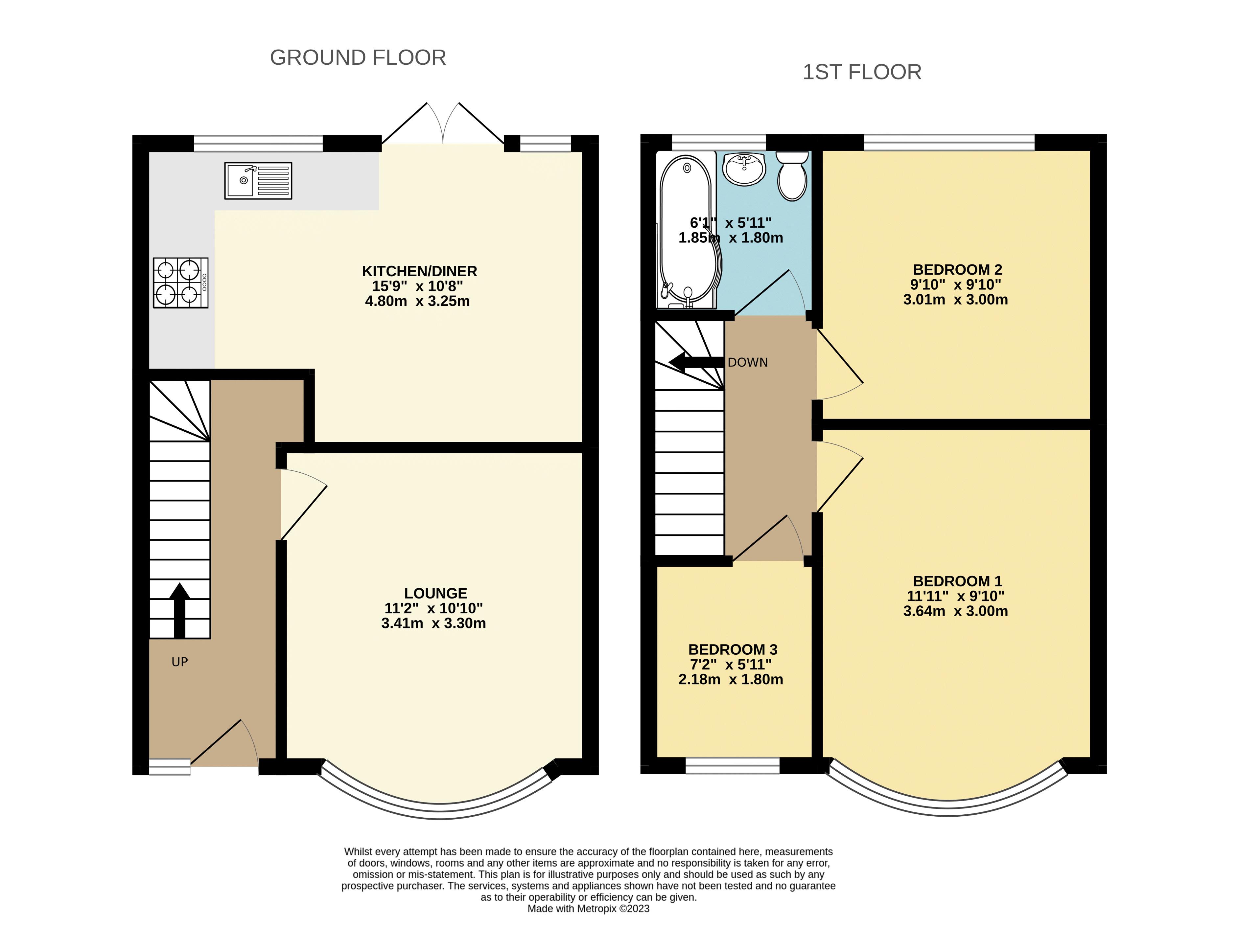 Bedroom Two: 9' 11'' x 11' 1'' (3.02m x 3.38m)